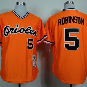 Authentic MLB Mitchell and Ness 1975 Orioles #5 Brooks Robinson Orange Throwback Stitched MLB Jersey