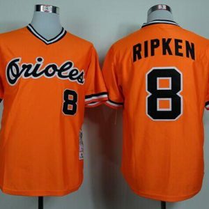 Authentic MLB Mitchell and Ness 1982 Orioles #8 Cal Ripken Orange Throwback Stitched MLB Jersey