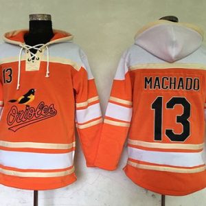Authentic MLB Orioles #13 Manny Machado Orange Sawyer Hooded Sweatshirt MLB Hoodie