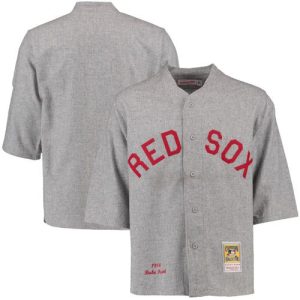• Authentic MLB Mitchell And Ness 1914 Red Sox #3 Babe Ruth Grey Throwback Stitched MLB Jersey