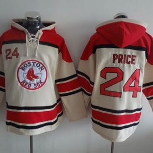 Authentic MLB Red Sox #24 David Price Cream Sawyer Hooded Sweatshirt MLB Hoodie