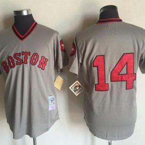 Authentic MLB Mitchell and Ness 1975 Red Sox #14 Jim Rice Grey Stitched Throwback MLB Jersey