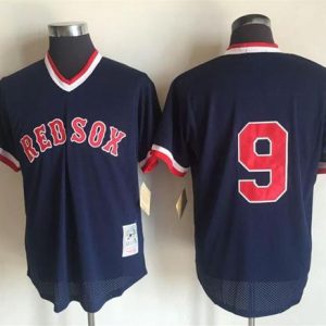 Authentic MLB Mitchell And Ness 1990 Red Sox #9 Ted Williams Dark Blue Stitched Throwback MLB Jersey