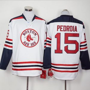 Authentic MLB Red Sox #15 Dustin Pedroia White Long Sleeve Stitched MLB Jersey
