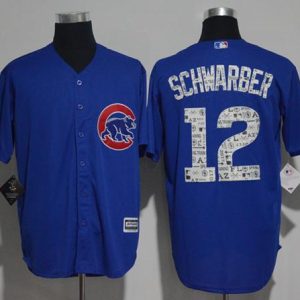 Authentic MLB Cubs #12 Kyle Schwarber Blue Team Logo Fashion Stitched MLB Jersey