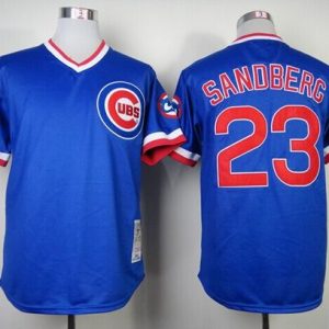 Authentic MLB Mitchell And Ness 1984 BP Cubs #23 Ryne Sandberg Blue Throwback Stitched MLB Jersey