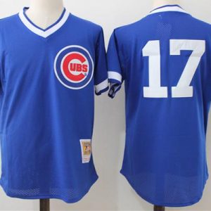 Authentic MLB Mitchell And Ness Cubs #17 Kris Bryant Blue Throwback Stitched MLB Jersey