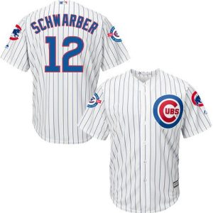 Authentic MLB Cubs #12 Kyle Schwarber White Strip Cool Base Stitched MLB Jersey