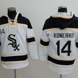 Authentic MLB White Sox #14 Paul Konerko White Sawyer Hooded Sweatshirt MLB Hoodie