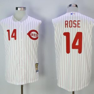 Authentic MLB Mitchell And Ness 2000 Reds #14 Pete Rose White Strip Throwback Stitched MLB Jersey