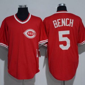 Authentic MLB Mitchell And Ness 1983 Reds #5 Johnny Bench Red Throwback Stitched MLB Jersey