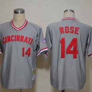 Authentic MLB Mitchell And Ness Reds #14 Pete Rose Grey Throwback Stitched MLB Jersey