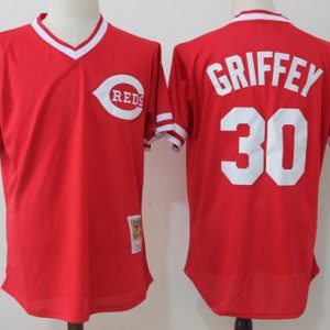 Authentic MLB Mitchell And Ness Reds #30 Ken Griffey Red Throwback Stitched MLB Jersey