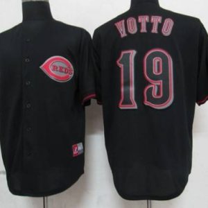 Authentic MLB Reds #19 Joey Votto Black Fashion Stitched MLB Jersey