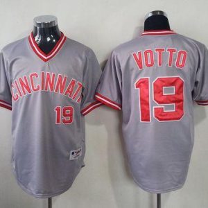 Authentic MLB Reds #19 Joey Votto Grey 1991 Turn Back The Clock Stitched MLB Jersey