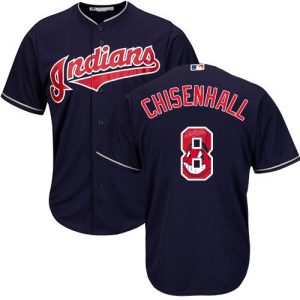 Authentic MLB Indians #8 Lonnie Chisenhall Navy Blue Team Logo Fashion Stitched MLB Jersey