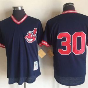 Authentic MLB Mitchell And Ness 1986 Indians #30 Joe Carter Blue Throwback Stitched MLB Jersey