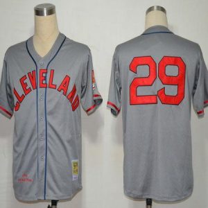 Authentic MLB Mitchell And Ness 1948 Indians #29 Satchel Paige Grey Stitched MLB Jersey