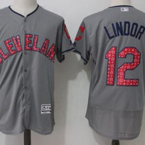 Authentic MLB Indians #12 Francisco Lindor Grey Fashion Stars & Stripes Flexbase Authentic Stitched MLB Jersey