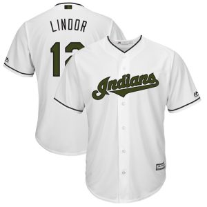 Authentic MLB Indians #12 Francisco Lindor White New Cool Base 2018 Memorial Day Stitched MLB Jersey