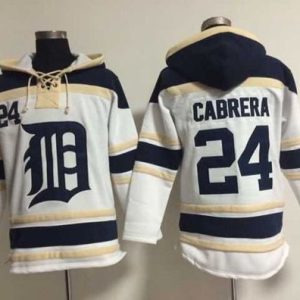 Authentic MLB Tigers #24 Miguel Cabrera White Sawyer Hooded Sweatshirt MLB Hoodie