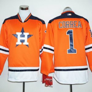Authentic MLB Astros #1 Carlos Correa Orange Long Sleeve Stitched MLB Jersey
