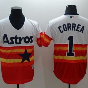 Authentic MLB Astros #1 Carlos Correa White/Orange 1980 Turn Back The Clock Stitched MLB Jersey