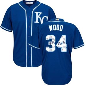 Authentic MLB Royals #34 Travis Wood Royal Blue Team Logo Fashion Stitched MLB Jersey
