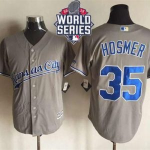 Authentic MLB Royals #35 Eric Hosmer New Grey Cool Base W/2015 World Series Patch Stitched MLB Jersey