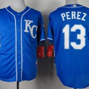 Authentic MLB Royals #13 Salvador Perez Blue Alternate 2 Cool Base Stitched MLB Jersey