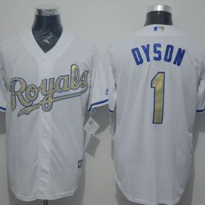 Authentic MLB Royals #1 Jarrod Dyson White New Cool Base 2015 World Series Champions Gold Program Stitched MLB Jersey