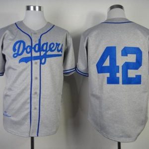Authentic MLB Mitchell and Ness 1955 Dodgers #42 Jackie Robinson Grey Throwback Stitched MLB Jersey