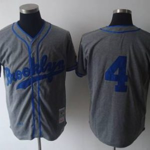 Authentic MLB Mitchell and Ness 1945 Dodgers #4 Babe Herman Grey Stitched Throwback MLB Jersey