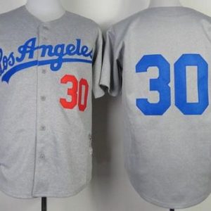 Authentic MLB Mitchell And Ness 1963 Dodgers #30 Maury Wills Grey Throwback Stitched MLB Jersey