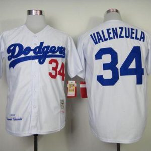 Authentic MLB Mitchell And Ness 1955 Dodgers #34 Fernando Valenzuela White Throwback Stitched MLB Jersey