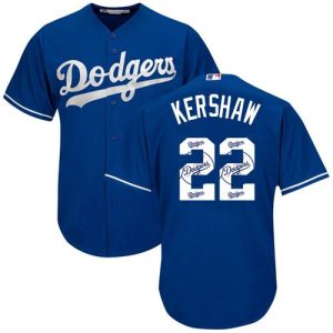 Authentic MLB Dodgers #22 Clayton Kershaw Blue Team Logo Fashion Stitched MLB Jersey