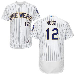 Authentic MLB Brewers #12 Stephen Vogt White Strip Flexbase Authentic Collection Stitched MLB Jersey