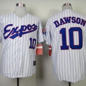 Authentic MLB Mitchell and Ness 1982 Expos #10 Andre Dawson White Blue Strip Throwback Stitched MLB Jersey
