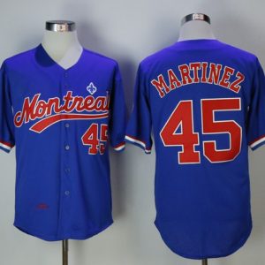 Authentic MLB Mitchell And Ness BP Expos #45 Pedro Martinez Blue Throwback Stitched MLB Jersey