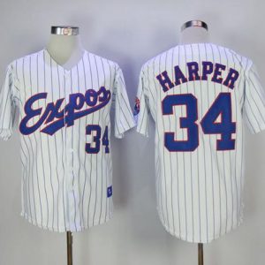 Authentic MLB Mitchell And Ness Expos #34 Bryce Harper White Strip Throwback Stitched MLB Jersey