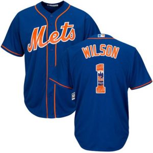 • Authentic MLB Mets #1 Mookie Wilson Blue Team Logo Fashion Stitched MLB Jersey