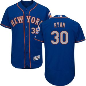Authentic MLB Mets #30 Nolan Ryan Blue Team Logo Fashion Stitched MLB Jersey