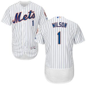 Authentic MLB Mets #1 Mookie Wilson White(Blue Strip) Flexbase Authentic Collection Stitched MLB Jersey