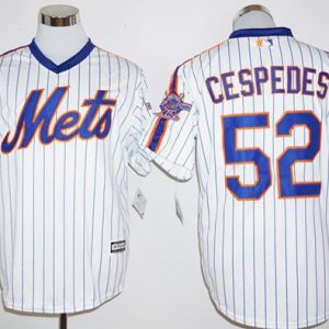 Authentic MLB Mets #52 Yoenis Cespedes White(Blue Strip) Cooperstown Stitched MLB Jersey