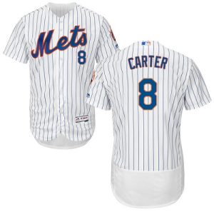 Authentic MLB Mets #8 Gary Carter White(Blue Strip) Flexbase Authentic Collection Father’s Day Stitched MLB Jersey