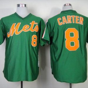 Authentic MLB Mitchell And Ness 1985 Mets #8 Gary Carter Green Throwback Stitched MLB Jersey