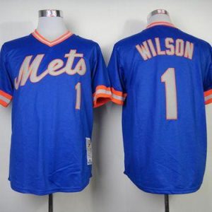 Authentic MLB Mitchell and Ness 1983 Mets #1 Mookie Wilson Blue Throwback Stitched MLB Jersey