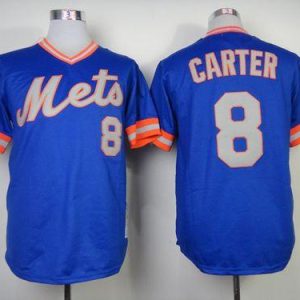 Authentic MLB Mitchell And Ness 1983 Mets #8 Gary Carter Blue Throwback Stitched MLB Jersey