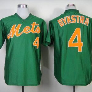 Authentic MLB Mitchell And Ness 1985 Mets #4 Lenny Dykstra Green Throwback Stitched MLB Jersey