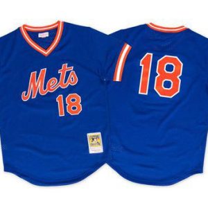 Authentic MLB Mitchell And Ness 1986 Mets #18 Darryl Strawberry Blue Throwback Stitched MLB Jersey